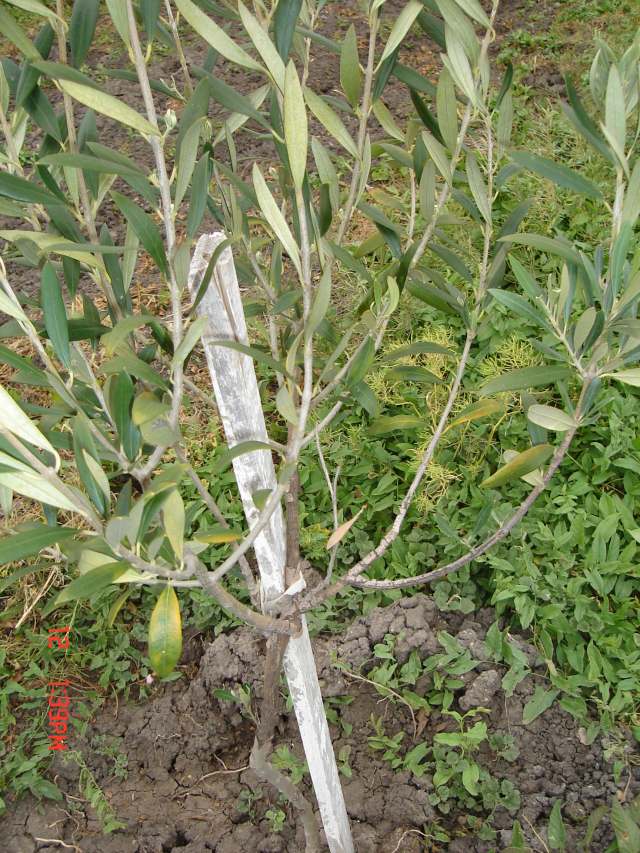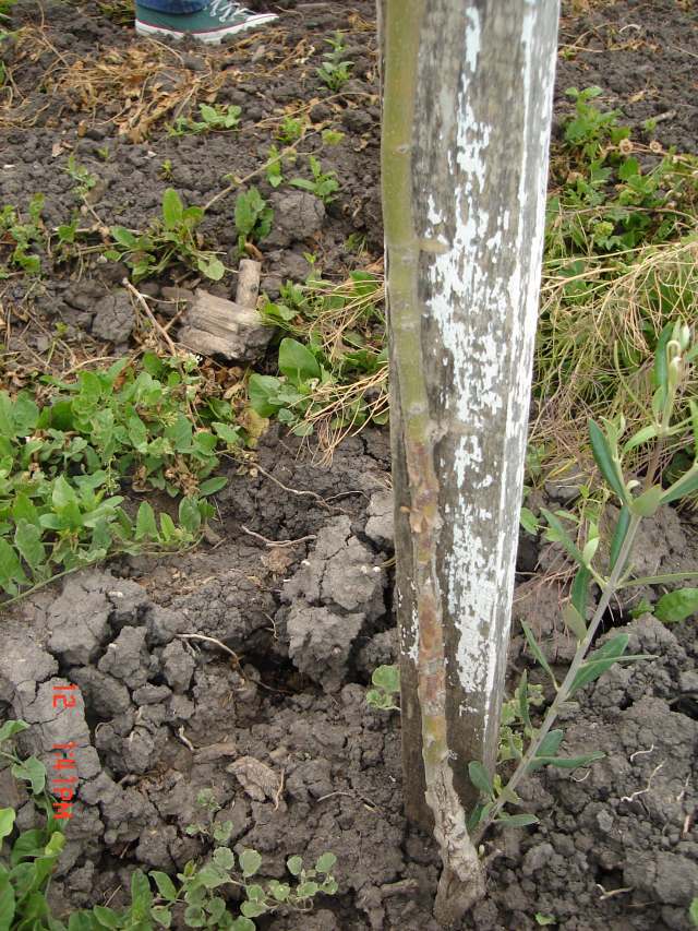 - Y no será culpa del tutor? es un deshecho de obra, quizá tratado en su día con productos químicos, pinturas, que se han ido diluyendo y pero quedan aún restos... también cal.. con la lluvia y la humedad se va degradando cada vez más y caen, digamos que chorrean, poco a poco, invisibles, al suelo... justo donde están las raíces del olivo. El olivo recibe esa amalgama química poco a poco, en dosis mínimas, que no le matan de golpe, pero que le afectan severamente al crecimiento...
