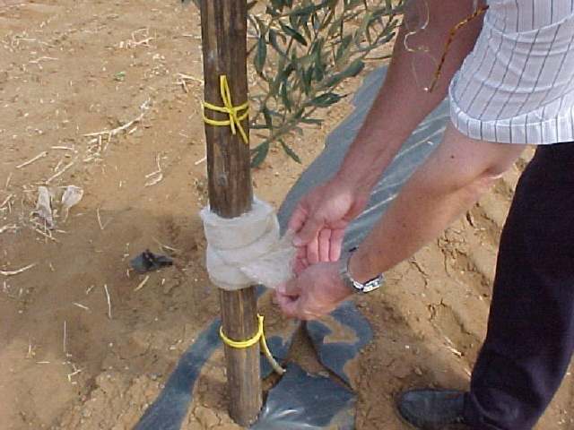 Os incluyo una foto que hice en una plantación, en la que se muestra cómo quedarían los olivos una vez enrollados con este tejido.