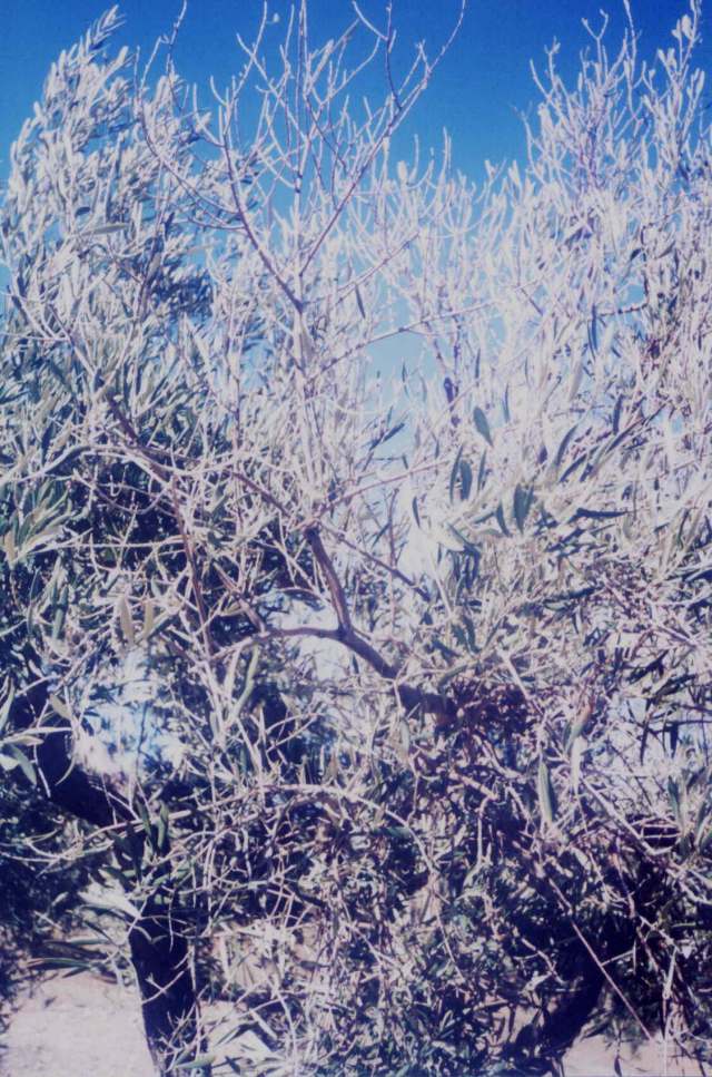 - GRACIAS. no se ven demasiado bien las hojas, empiezan a secarse (color tabaco) por las puntas, perdiendo las mismas. las fotos son del mismo olivo, tengo varios salteados por ello me acerco mas a falta de lo que sea que enfermedad. estan en un cerro, mala tierra, nada de riego por lo que no puede ser axfisia radicular, repito GRACIAS CHICOS.-