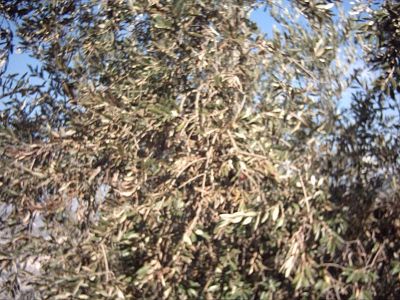 CONSULTA: He observado en mis olivos una enfermedad consistente en que las hojas amarillean, se secan y acaban cayéndose, preferentemente por la cara del saliente.
