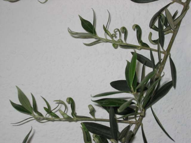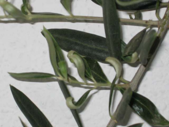 CONSULTA: En un olivo aislado han aparecido estas deformaciones en las hojas (hojas enrolladas, hojas palmeadas, hojas en forma de caliz y hojas terminales raquíticas).