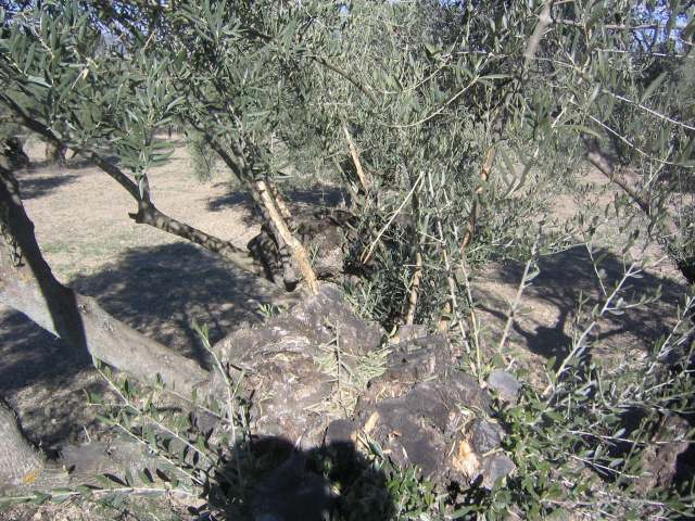 APROVECHO para pedir consejo, ese olivar está en secano, tierras muy ascillosas, bujeo en algunas zonas, metí el riego enterrado con el consiguiente daño sobre las raices, mucho, y dos años despues los surcos no están aporcados por lo que el riego es ineficaz, coincidió el estreno de vibro grande, paso a ecológico, paso a semi laboreo y años de lluvia que provocaron un fuerte ataque de repilo y gloesporium. TOTAL se juntó el hambre y las ganas de comer, tanto se debilitaron que opté por una tala salvaje para que los olivos tiraran con nuevo pero con la seca y los conejos me he encontrado con los olivos hechos mierda,