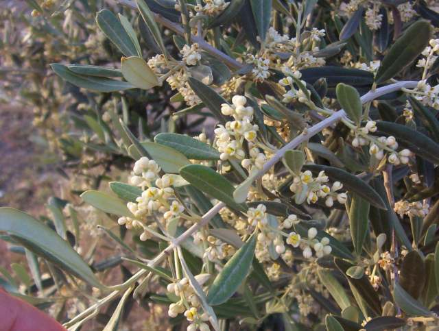 CONSULTA: Estoy sacando fotos de distintas variedades en floración , pero a menos que se tenga ADSL, el foro resulta aún poco operativo para andar descargando imágenes y como los archivos tienen que limitarse , no se aprecian mucho los detalles , así que no he optado por las adivinanzas, sino que os envío una muestra de como están los hojiblancos a 8 de mayo, por cierto la 3 foto es más que nada para demostrar que los marcos estrechos no sirven, ( al menos a mí) esos olivos están a 6x8, los plantamos en el 94 y por la calle de 6 están ya muy cerca unos de otros.