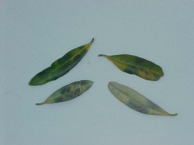 CONSULTA: Me podría decir alguien que es lo que le pasa a mi olivo, como se ve en la foto las manchas pasan de un lado a otro y este aspecto lo presentan mas ó menos un 20%. de las hojas y es un olivo joven de tres años, de hojiblanca